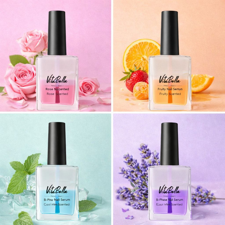 سرم تقویت ناخن ویتابلا در ۴ رایحه جذاب و دلنشین عرضه میشود تا علاوه بر مراقبت، تجربهای لذتبخش برای شما ایجاد کند: